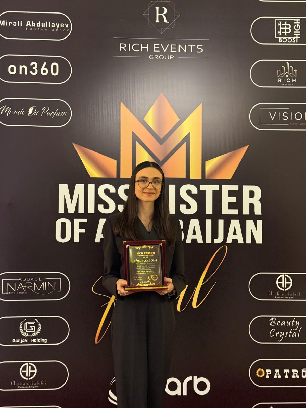Mükafatlandırma gecəsində fərqlənən, yadda qalan, peşəkar şəxslər və şirkətlər mükafatlandırılıb. Mental arifmetika və oxu təlimi üzrə mütəxəssis Zibər Zalova "Rich Events Group” şirkətinin təkilatçılığı ilə "Rich Person Awards 2025” layihəsində "İş Xanımı” nominantına layiq görülüb. Həmçinin "Miss Mister Of Azerbaijan 2025” yarışmasının finalında "Münsif” olaraq iştirakına və göstərmiş olduğu dəstəyə görə təltif olunub.