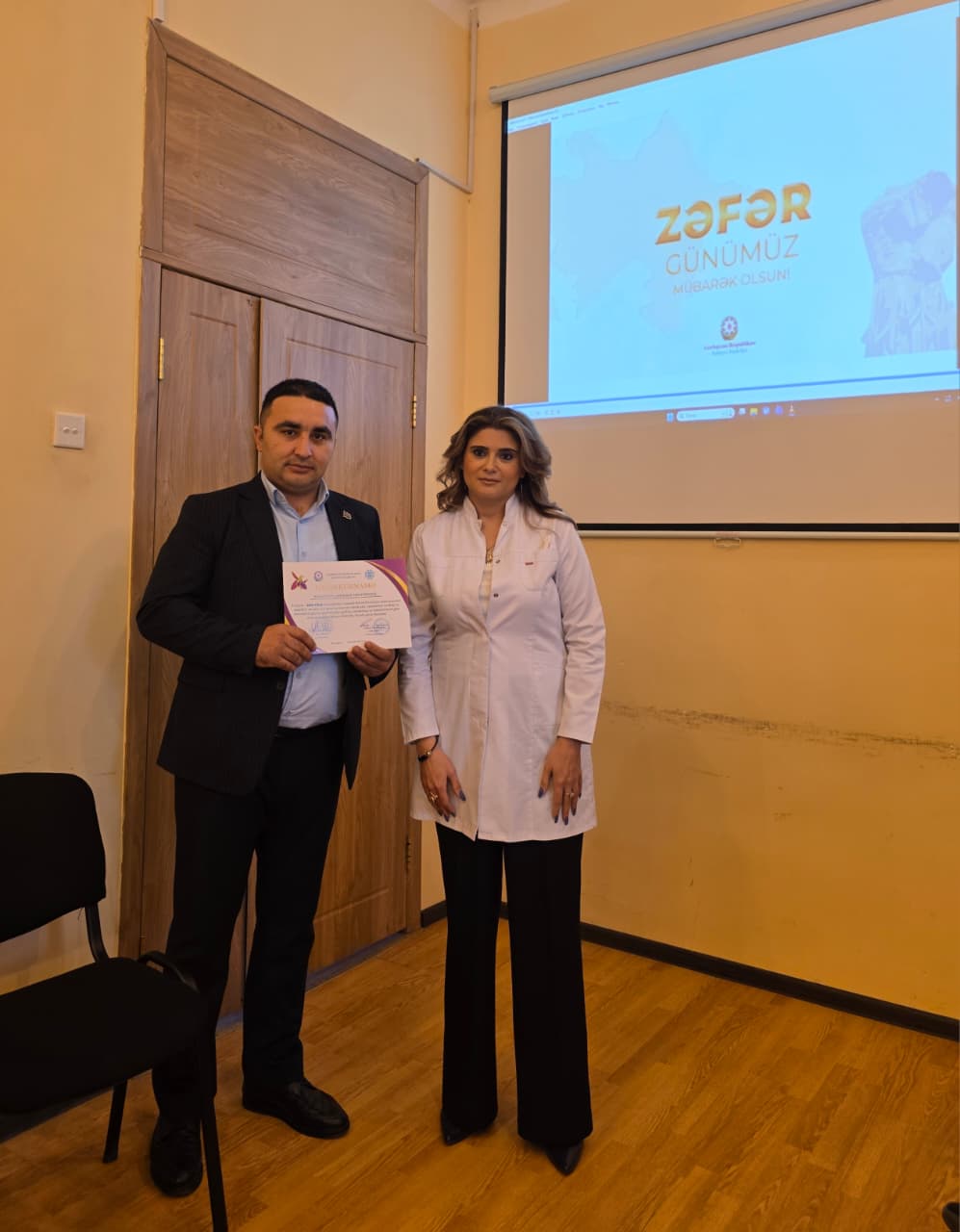 Sonda Səhiyyə Nazirliyi 2 nömrəli Klinik Psixiatriya Xəstəxanasın baş həkimi Leyla Bəşirova tərəfindən Vətən müharibəsində iştirak etmiş xəstəxananın əməkdaşları fədakar xidmətlərinə görə təşəkkürnamə ilə təltif olunublar.