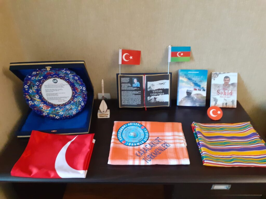 Göndərilən hədiyyələr arasında Türk Bayrağı, miniatür bağlama, dərnəyin logosu ilə hazırlanmış Türkmen yaylığı, müxtəlif rənglərdən ibarət keyfiye və Türk bayrağı tokası yer alıb.